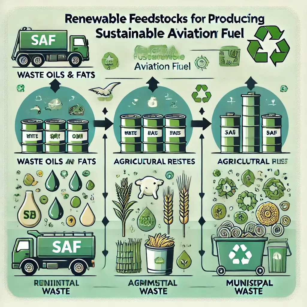 SAF can be produced from waste cooking oils, animal fats, and other waste oils. These feedstocks are recycled and repurposed, reducing waste and the carbon footprint of aviation.